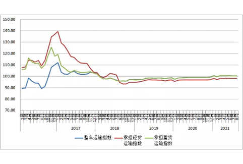 分車型指數(shù)看,各車型指數(shù)環(huán)比略有回升,相比去年同期保持小幅增長(zhǎng)。以大宗商品及區(qū)域運(yùn)輸為主的整車指數(shù)為100.5點(diǎn),比上月回升0.06%,比上年同期增長(zhǎng)1.6%。零擔(dān)指數(shù)中,零擔(dān)輕貨指數(shù)為98.1點(diǎn),比上月回升0.01%,比上年同期增長(zhǎng)1.3%;零擔(dān)重貨指數(shù)為100.5點(diǎn),比上月回升0.08%,比上年同期增長(zhǎng)1.5%。