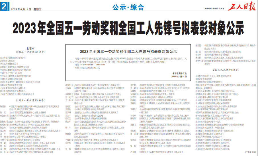進(jìn)入全國(guó)工人先鋒號(hào)公示名單