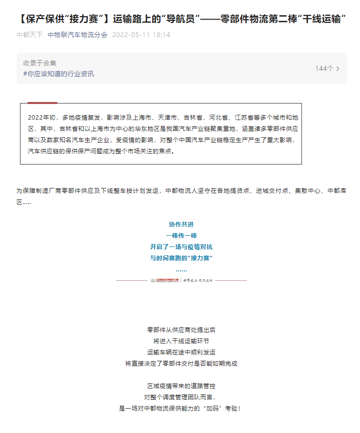 【保產(chǎn)保供“接力賽”】運輸路上的“導航員”——零部件物流第二棒“干線運輸”