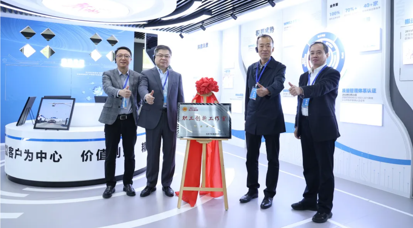 比賽期間,孫宇、王建平、謝偉及朱勵(lì)光為北汽集團(tuán)四星級(jí)創(chuàng)新工作站揭牌,并參觀中都物流庫區(qū)。